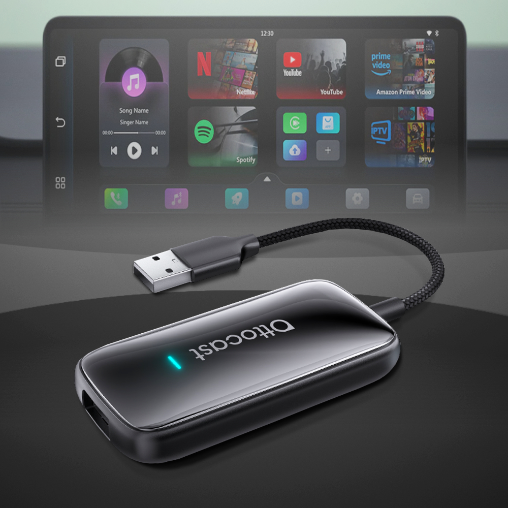 Podłączenie adaptera Ottocast Play2Video Ultra jest dziecinnie proste. Wystarczy wpiąć urządzenie do portu USB w Twoim aucie, aby natychmiast cieszyć się bezprzewodowym połączeniem.