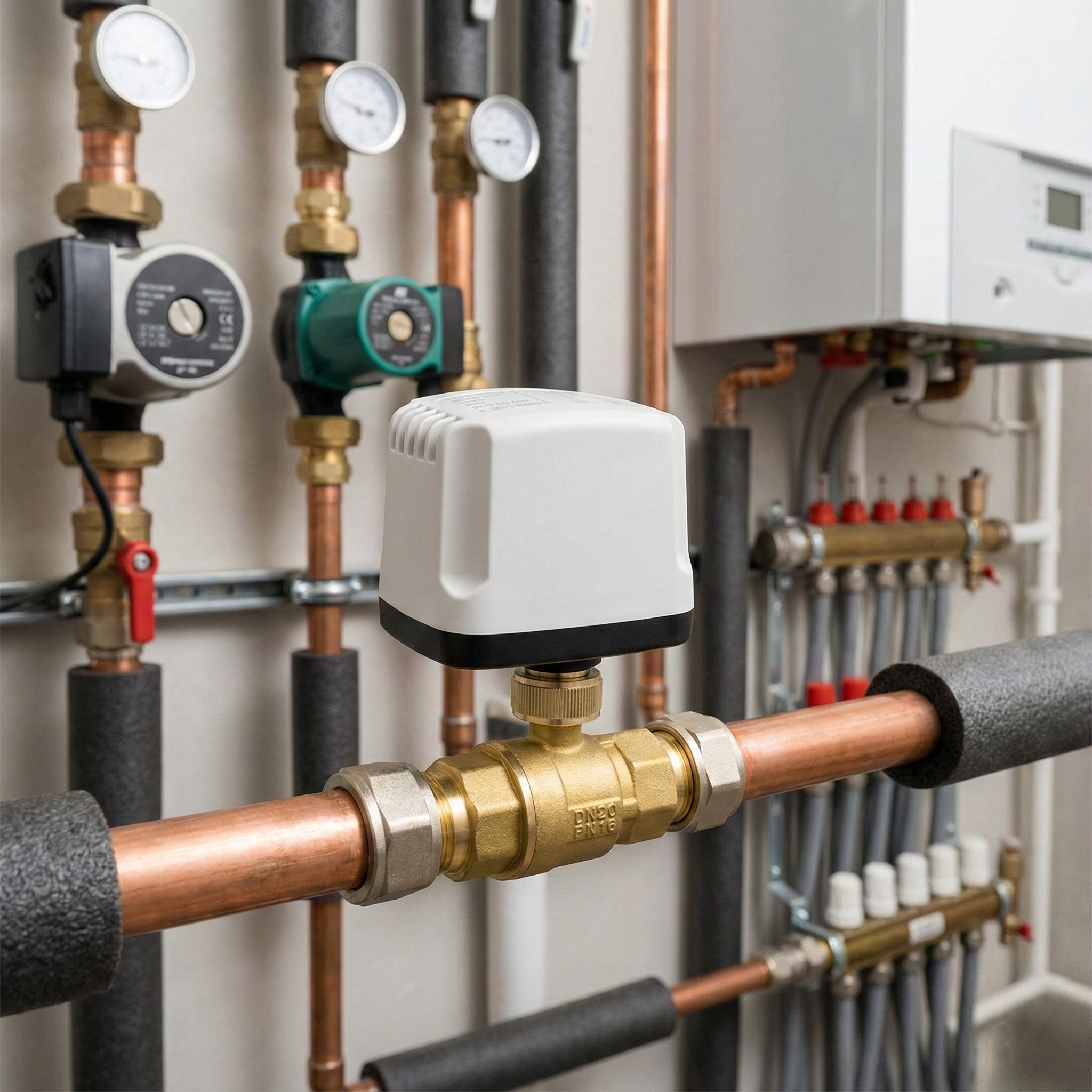 Jego sercem jest silnik synchroniczny 20W, zasilany prądem 230V który w ciągu 15 sekund w pełni otwiera lub zamyka przepływ (zawór może być tylko w pełni otwarty lub zamknięty, nie można ustawić częsciowego otwarcia)