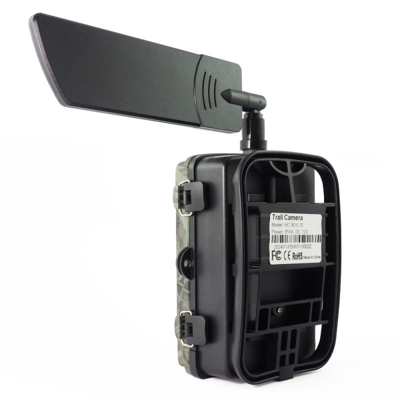 Fotopułapka HC-801 4G LTE może być zasilana za pomocą 8 baterii AA, co zapewnia mobilność i niezależność od źródeł zasilania. Dodatkowo, urządzenie posiada wejście 6-12V, umożliwiające podłączenie do stałego źródła zasilania, co jest idealnym rozwiązaniem w miejscach o długotrwałym użytkowaniu.