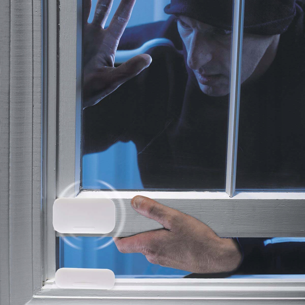Miniaturowy kontaktron magnetyczny - wykrywa otwarcie drzwi i okien, a o zdarzeniu powiadamia w aplikacji.
