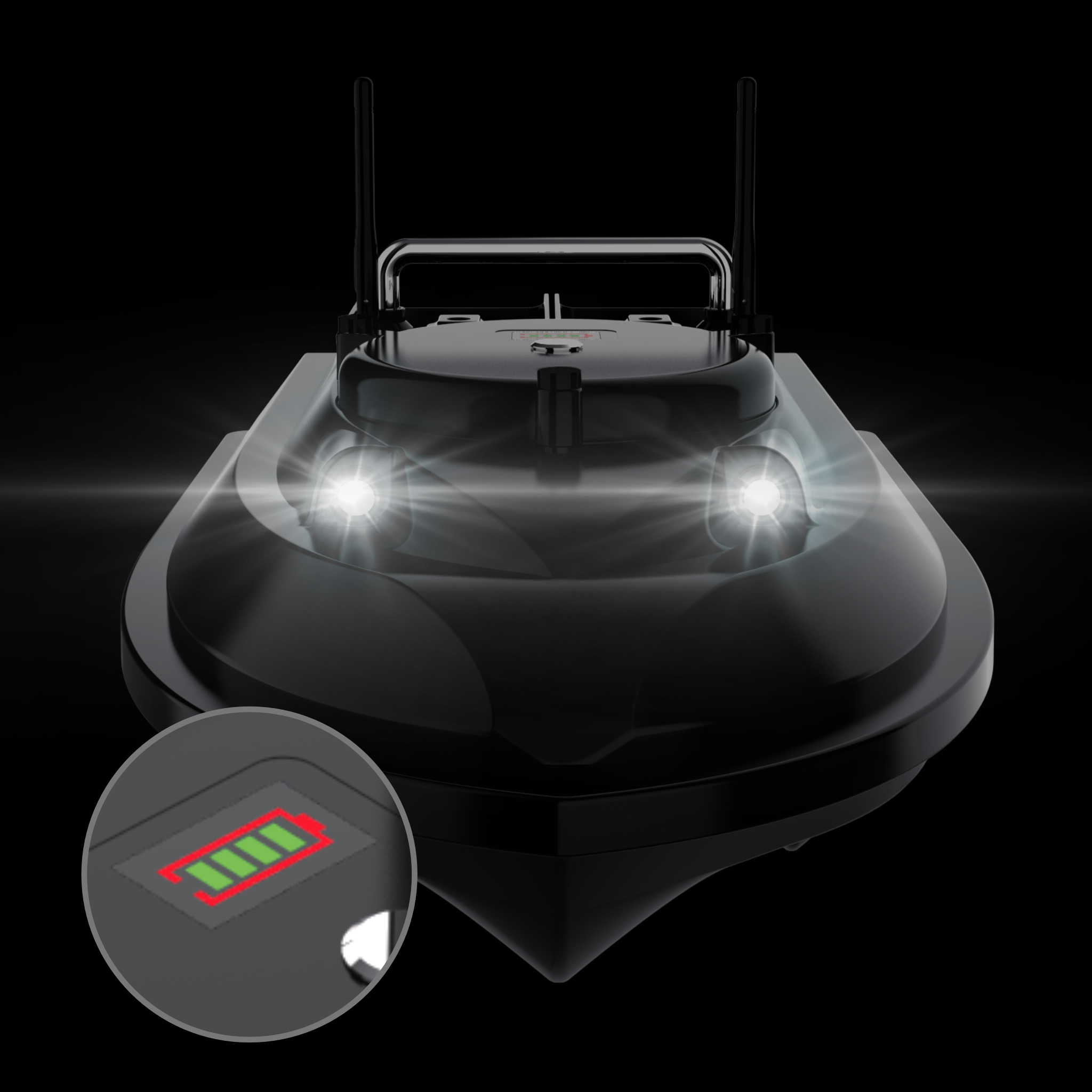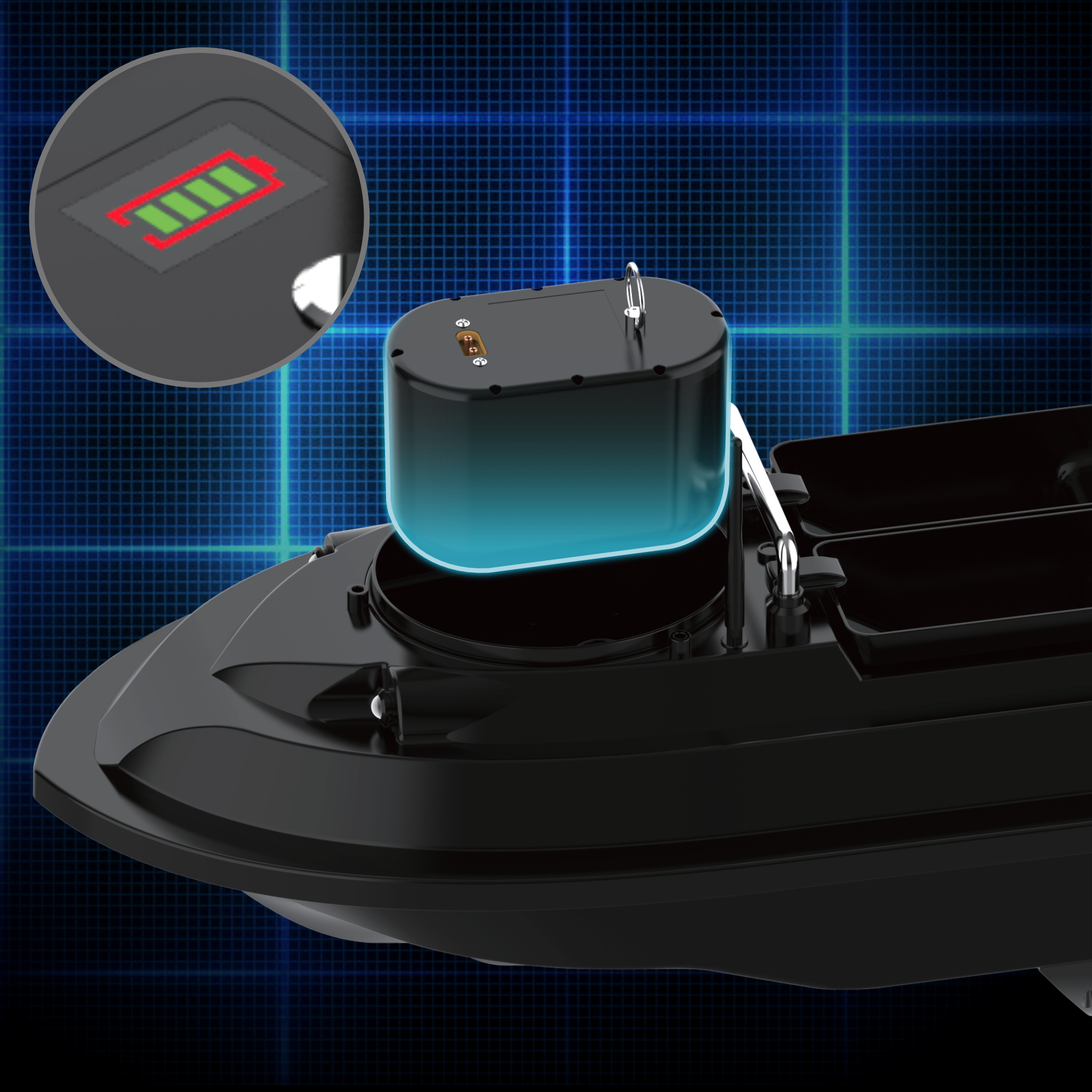 Do łódki dołączono akumulator 11.1V o pojemności 18000 mAh. W pełni naładowany wystarczy na 4 godziny pływania* - naładujesz go dołączoną do zestawu ładowarką.