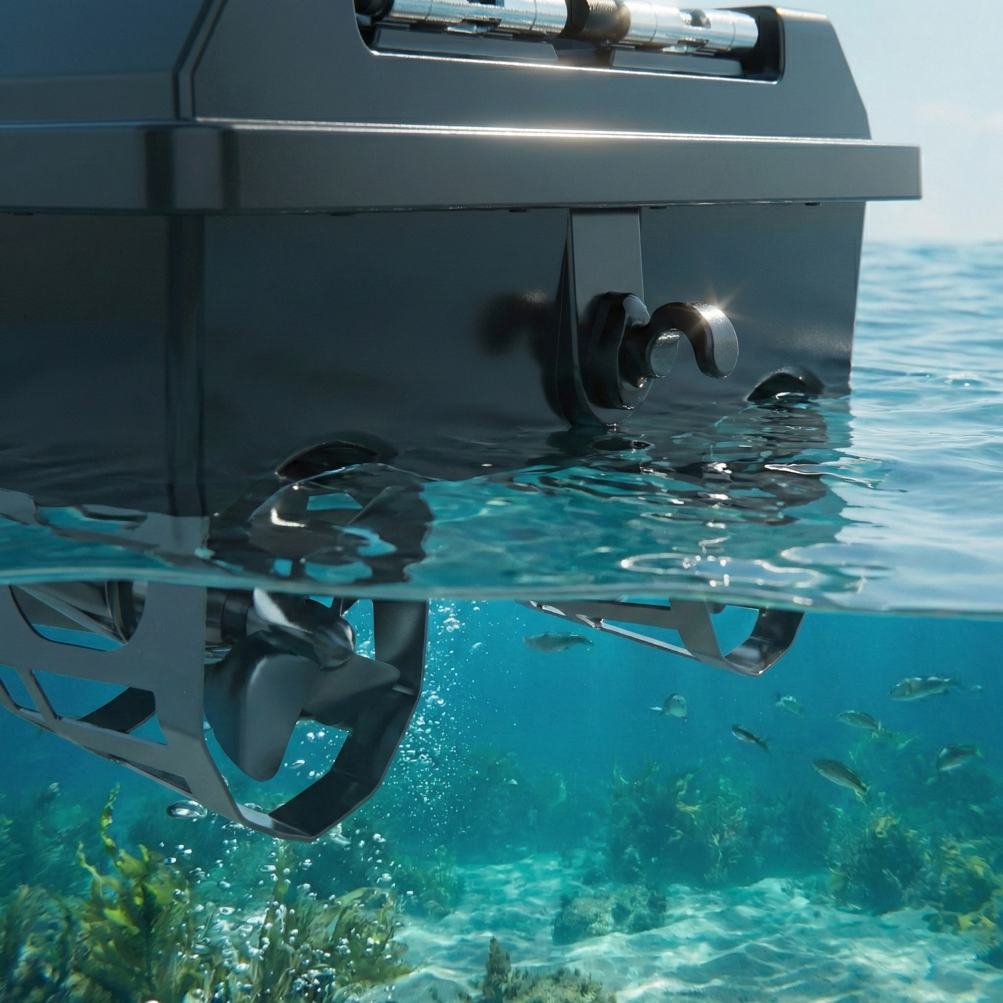 Śruby napędzające łódkę są osłonięte, dzięki czemu możesz pływać nawet w wodzie zanieczyszczonej np. liśćmi, gałązkami itp.