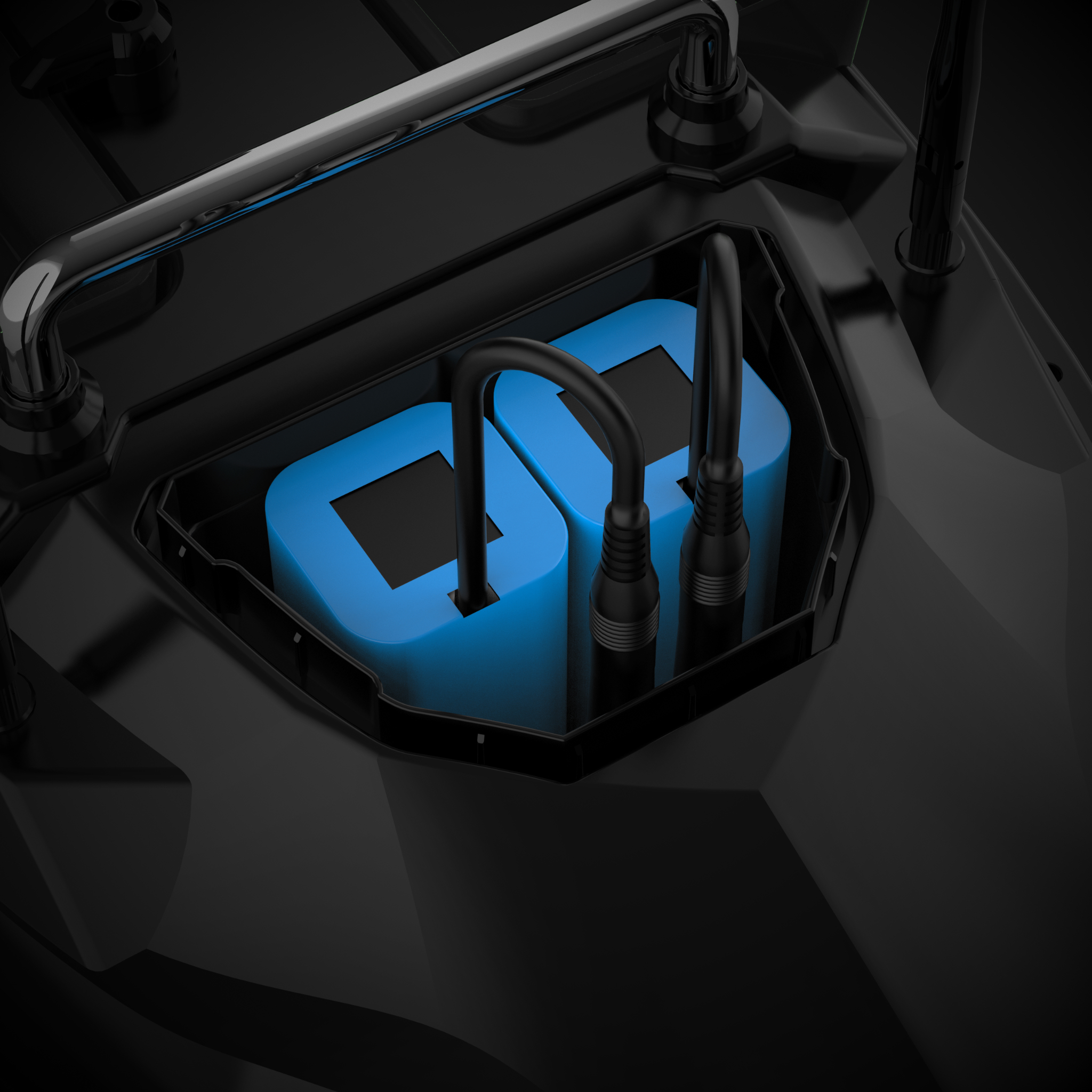 Łódka posiada unikalny system zasilania pozwalający podłączyć dwa akumulatory - dwukrtonie wysłużając czas pracy.