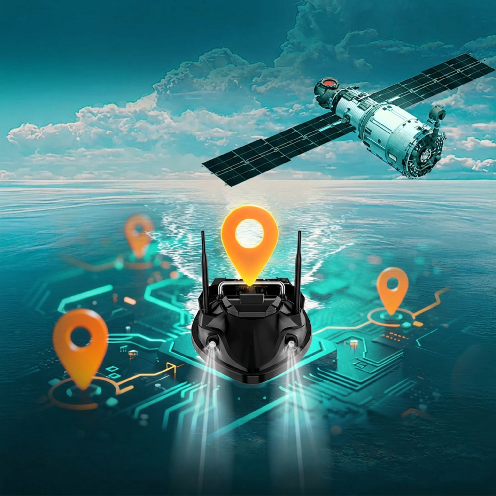 Funkcja GPS pozwala łatwo sterować łódką do wybranych punktów na zbiorniku wodnym.