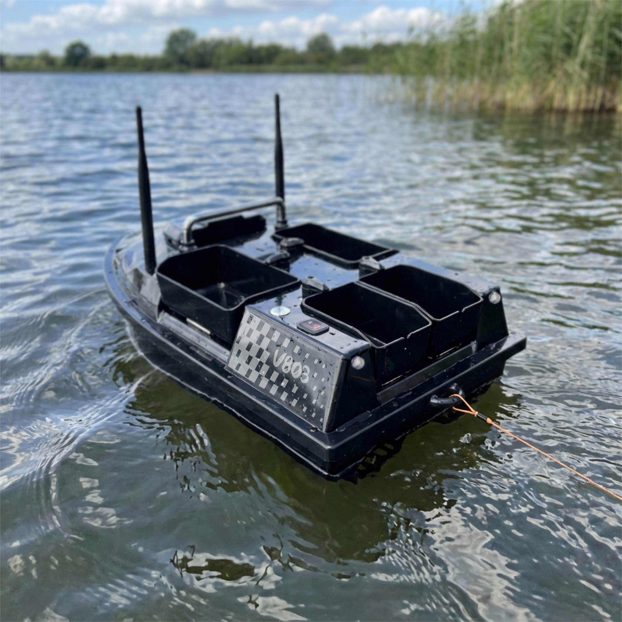 Profesjonalna łódka zanętowa GOMEDIA V803 GPS pozwoli Ci na wywiezienie zanęty lub dzięki specjalnemu zaczepowi np. echosondy w wybrane miejsce.
