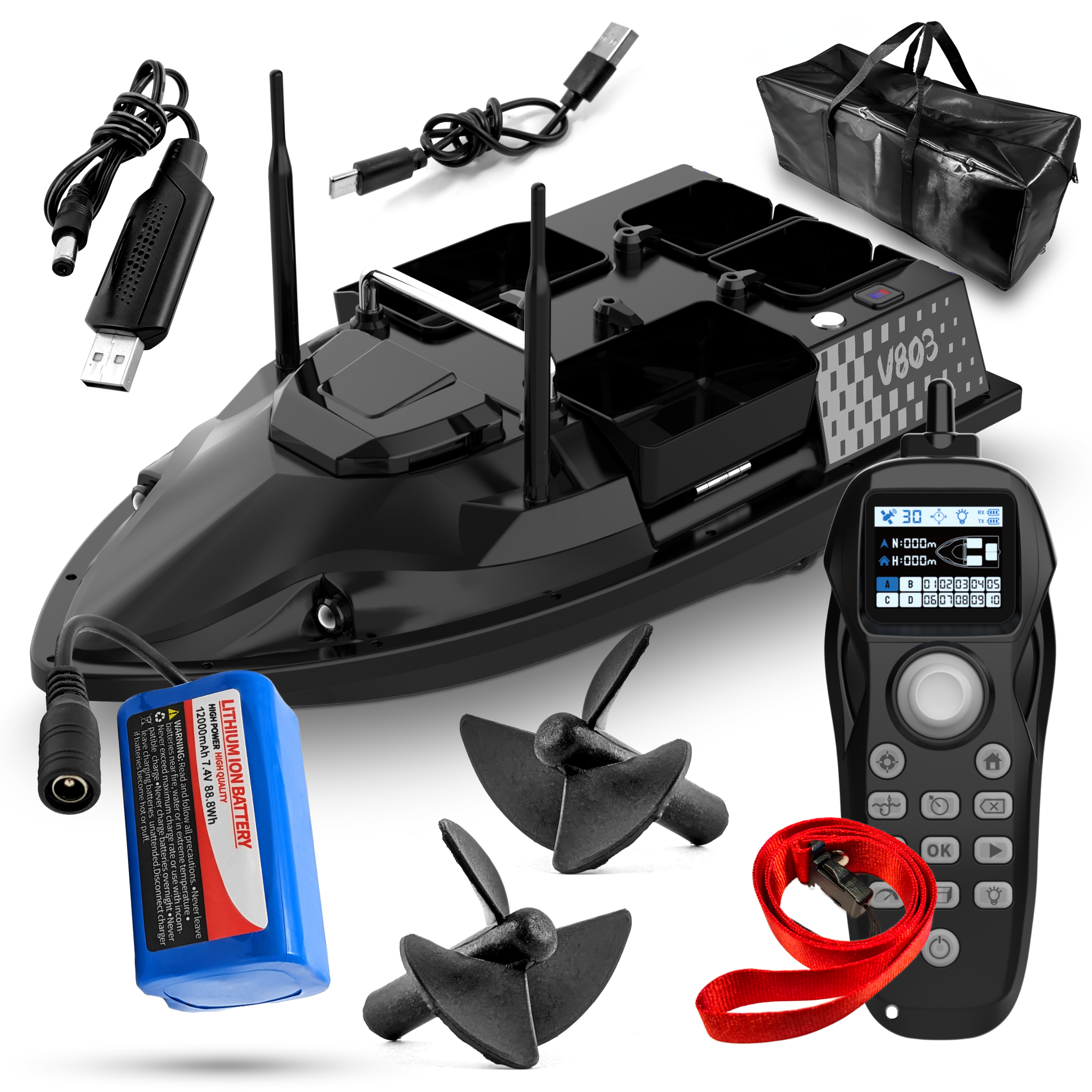 ✔️Kupując na tej aukcji łódkę zanętową GOMEDIA V803 GPS dodatkowo otrzymasz torbę na łódkę i akcesoria - gratis!