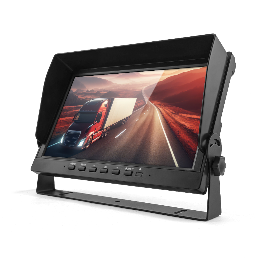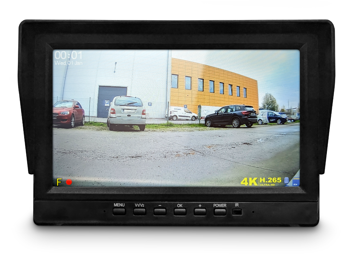 Monitor włącza się automatycznie po wykryciu sygnału z kamery, a dodatkowym ułatwieniem w obsłudze jest daszek przeciwsłoneczny eliminujący refleksy.