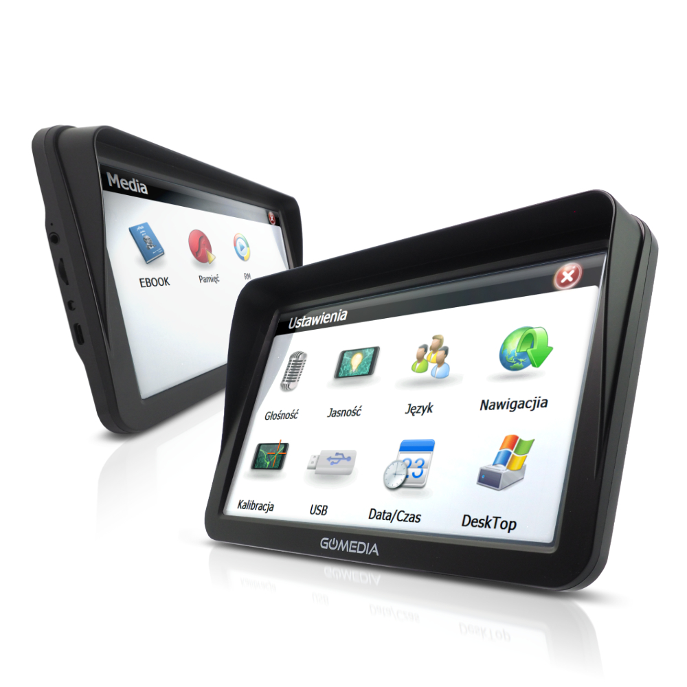 Nawigacja GOMEDIA 903 to urządzenie działające bardzo intuicyjnie z najnowszymi mapami iGo Primo Truck i osobowymi całej Europy