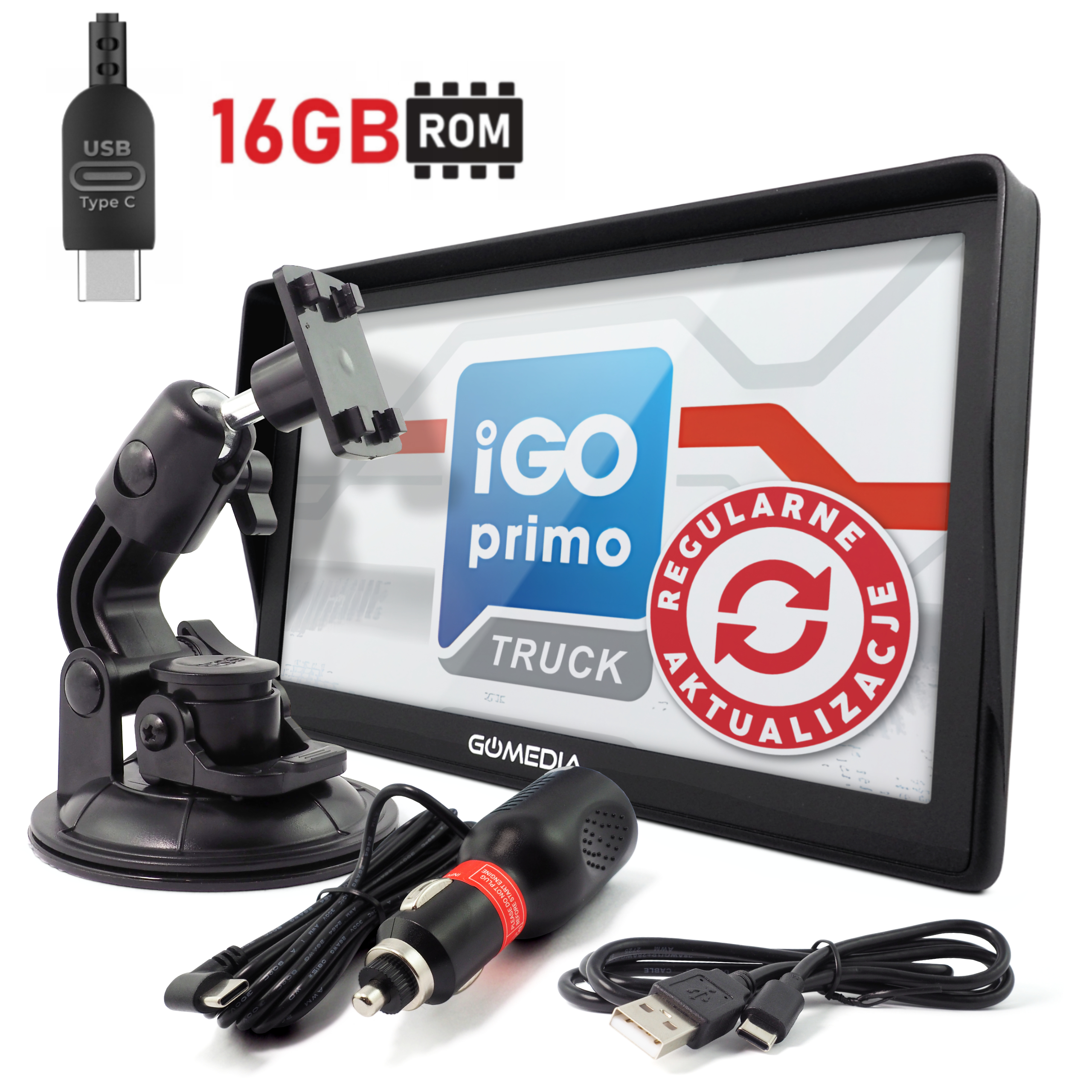 Nawigacja GOMEDIA 903Pro to urządzenie działające bardzo intuicyjnie z najnowszymi mapami iGo Primo Truck i osobowymi całej Europy