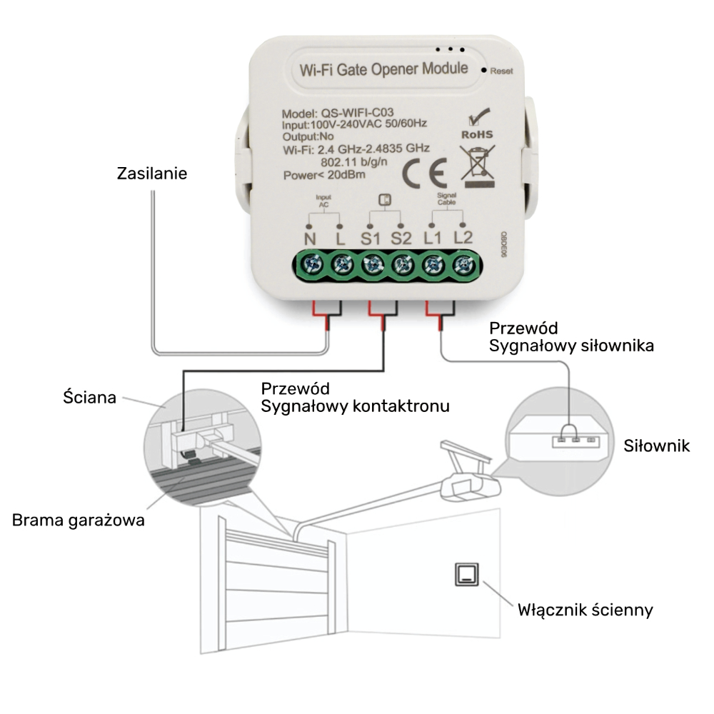 Uniwersalny sterownik bramy garażowej Wi-Fi + kontatron