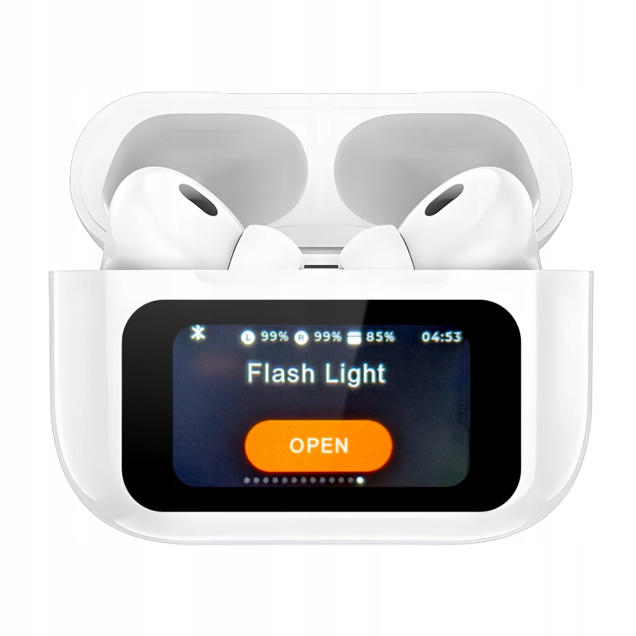 Baza słuchawek GOMEDIA V8 pełni również funkcję latarki. Po jej aktywacji ekran zaczyna świecić na biało i rozjaśnia się maksymalnie, co może okazać się niezwykle przydatne w nagłych sytuacjach, gdy potrzebujesz dodatkowego źródła światła.
