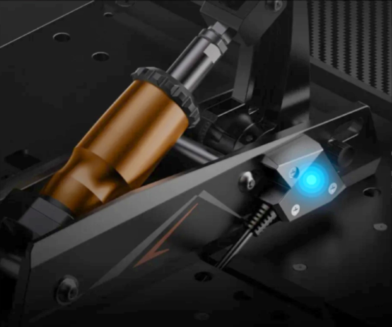 Zestaw został wyposażony w zaawansowany czujnik nacisku o maksymalnym obciążeniu 200 kg, zapewniający dokładne odwzorowanie siły hamowania – zbliżone do tego, które występuje w prawdziwych samochodach wyścigowych. Dzięki szerokiemu zakresowi pomiarowemu czujnik wiernie oddaje realistyczne odczucia z pedału hamulca, umożliwiając kierowcy precyzyjne dozowanie siły – kluczowe dla rozwijania pamięci mięśniowej i osiągania lepszych wyników na torze.
